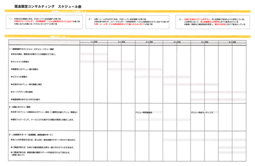 毎月の試算表の数字を『キャッシュフロー計画表』に当社で入力し、毎月一回訪問して、社長とその『キャッシュフロー計画表』を確認しながら